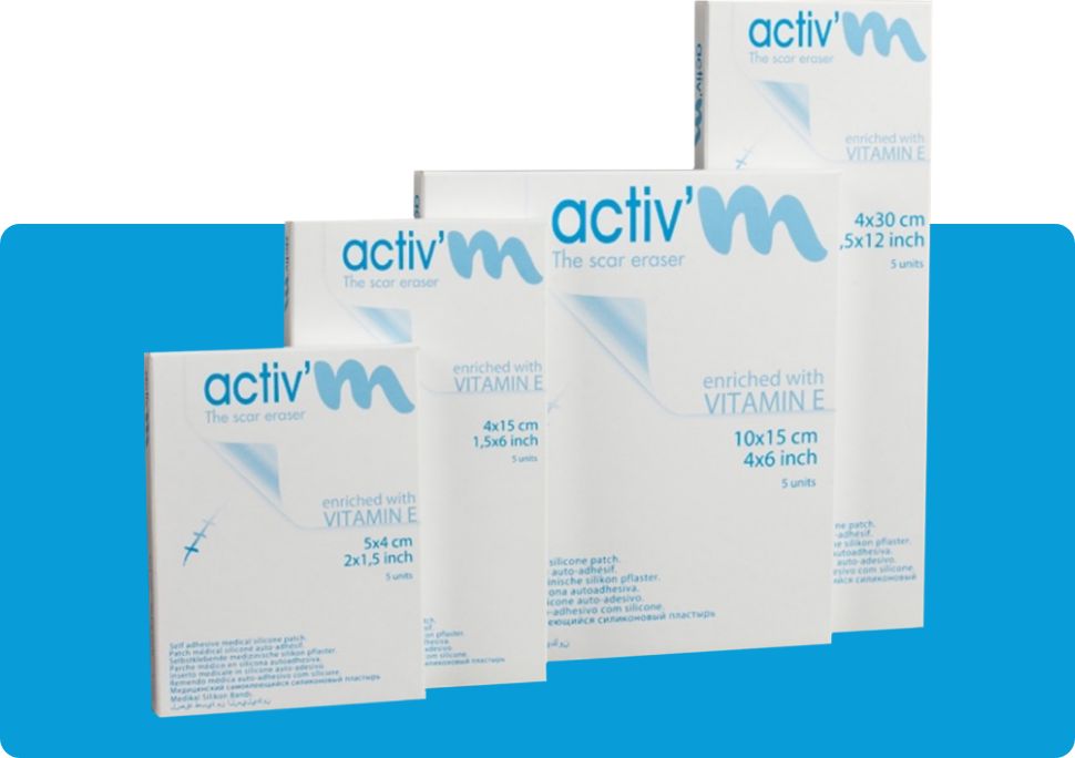 activ’M biedt siliconenverbanden en siliconengel die worden ingezet door professionals voor het voorkomen en behandelen van afwijkende littekens (hypertrofisch en keloïd).